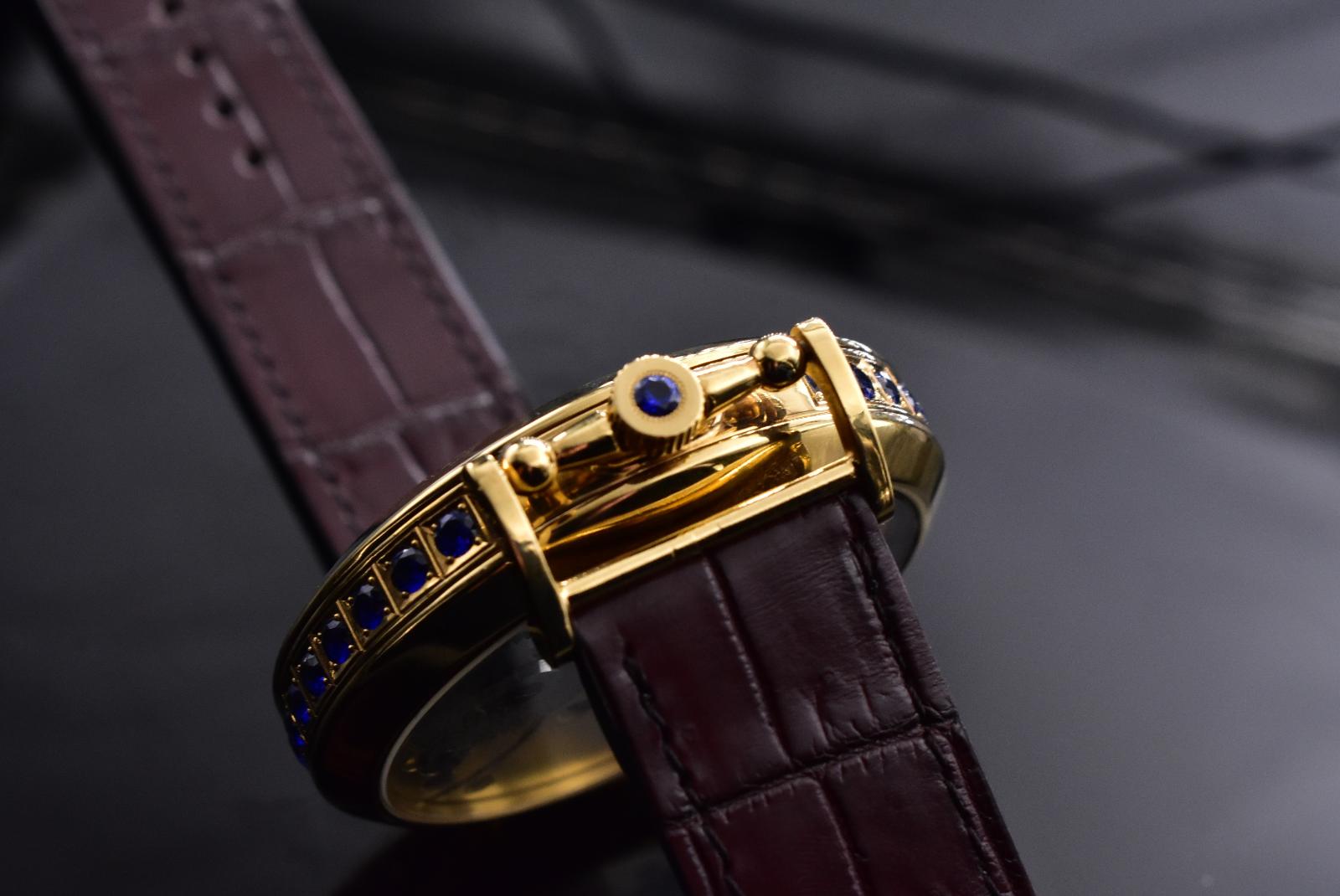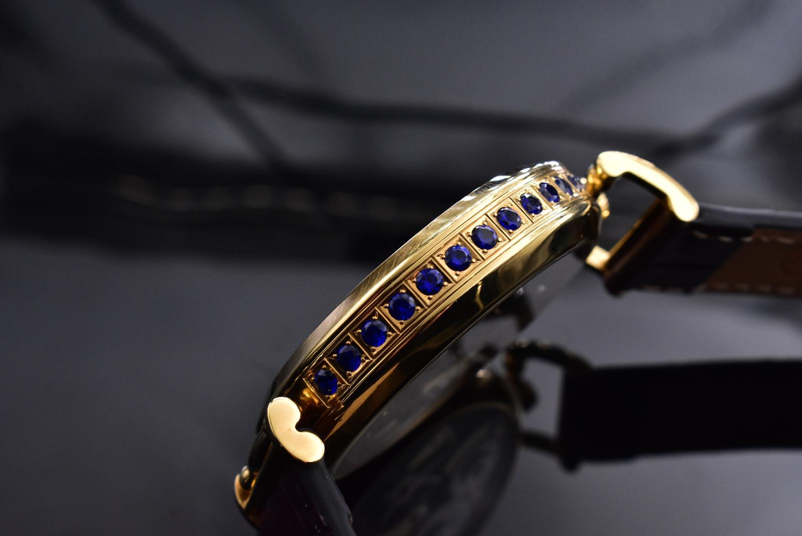 Speciálně pro tento sběratelský kousek bylo v našem ateliéru ručně odlito pouzdro z klenotnické mosazi o průměru 48 mm, inkrustované modrými zirkony. Povrch pouzdra byl následně upraven zlacením, což umocňuje jeho luxusní vzhled a historickou jedinečnost.