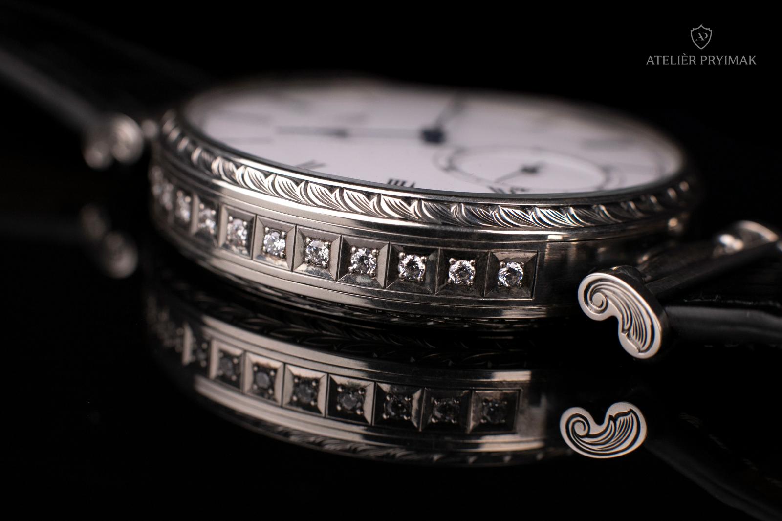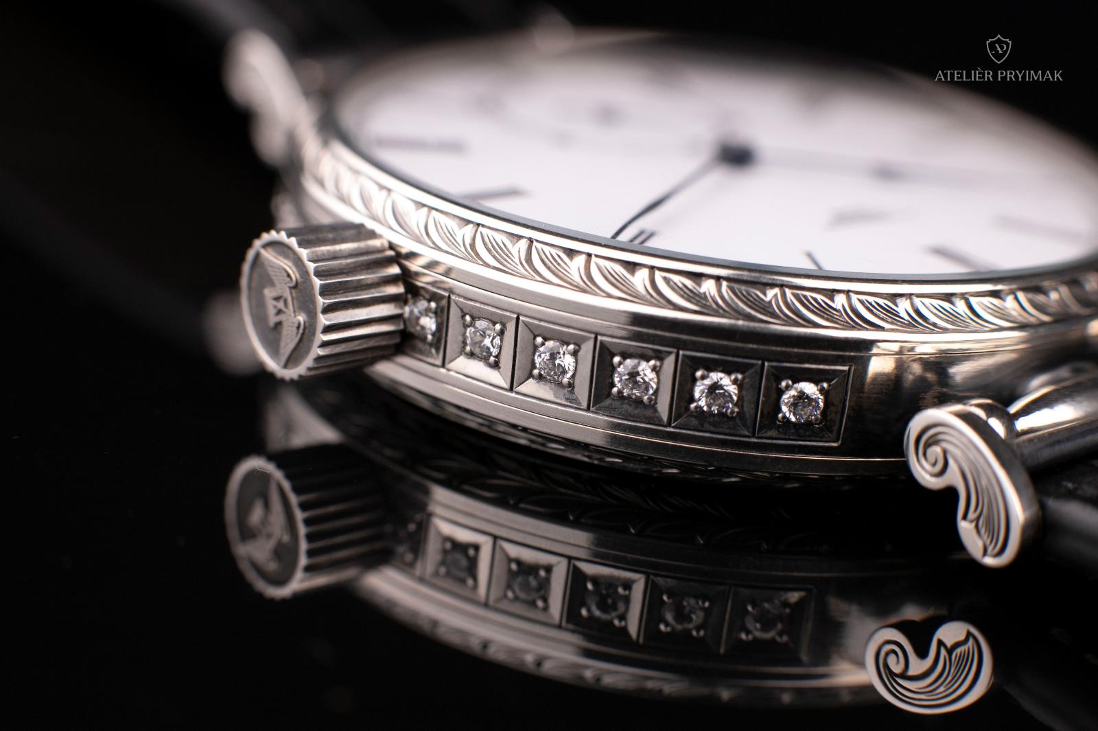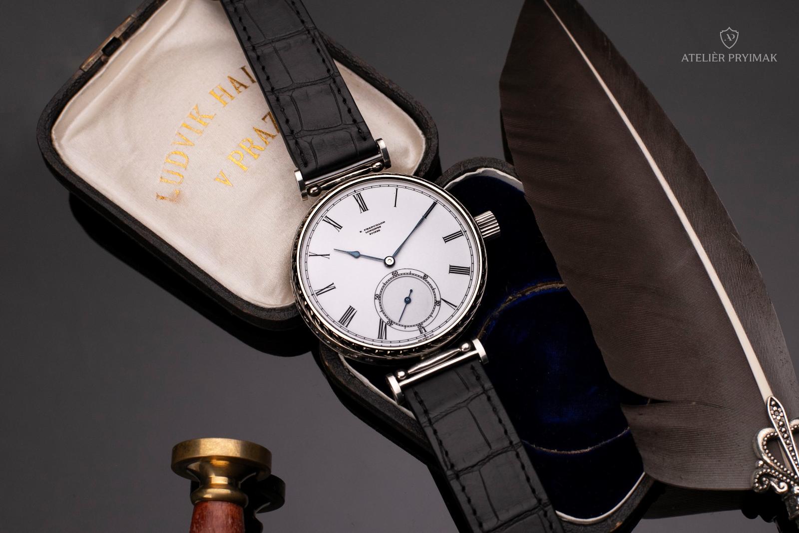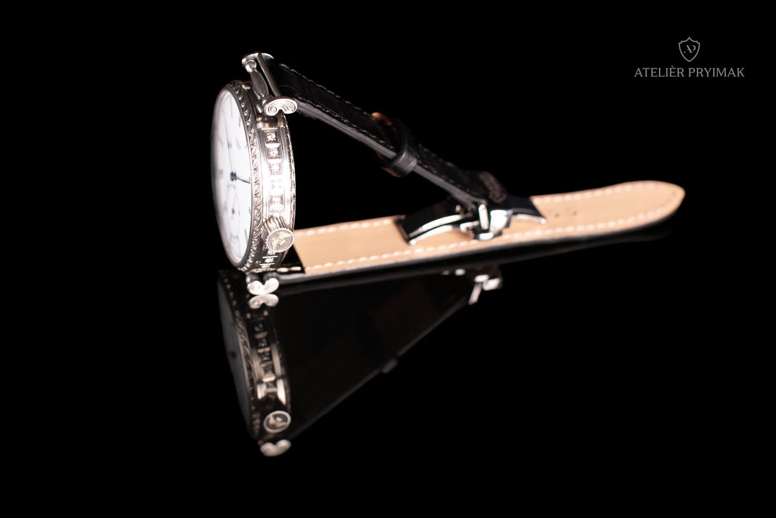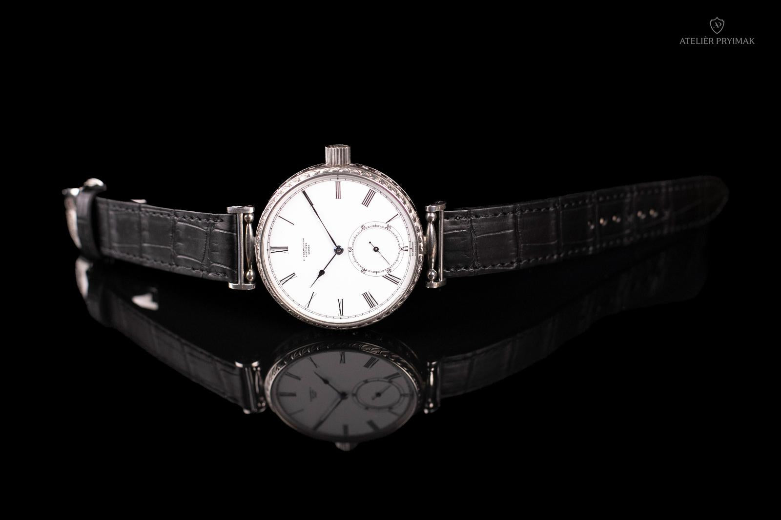 The watch comes in a lacquered wooden box and has a genuine crocodile leather strap.