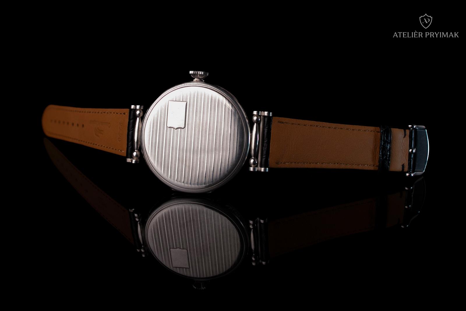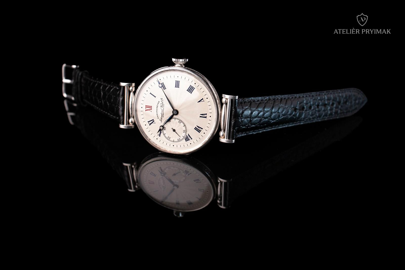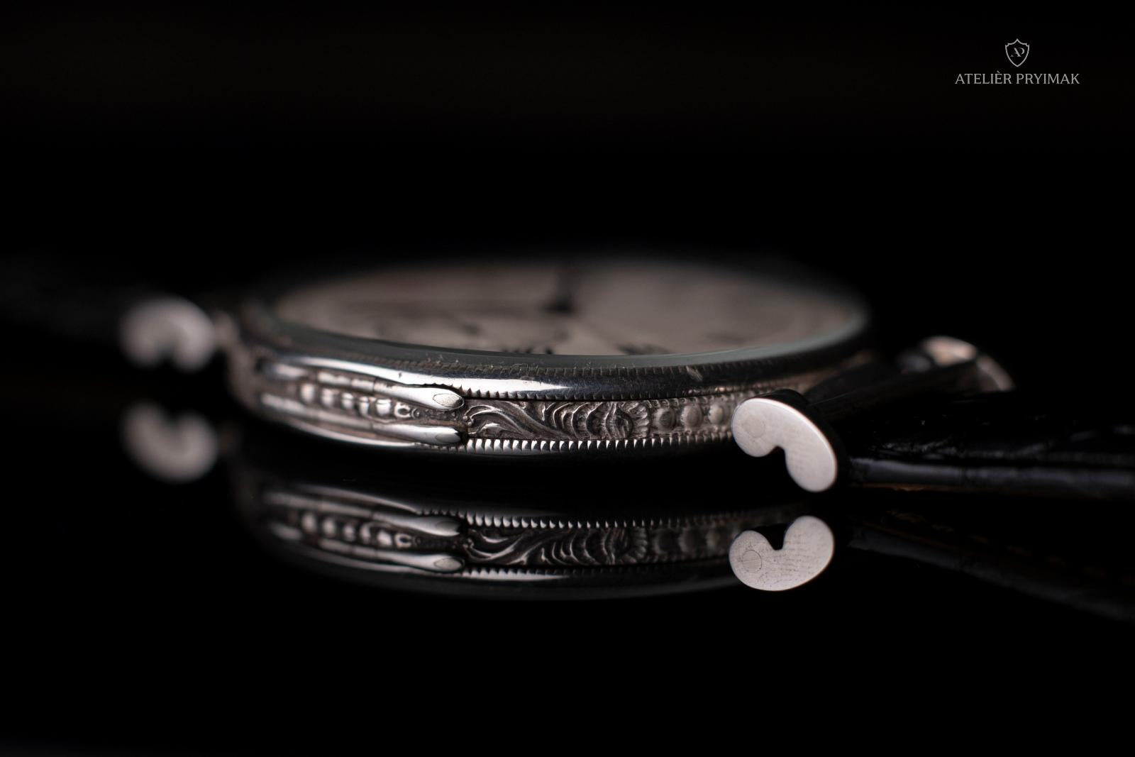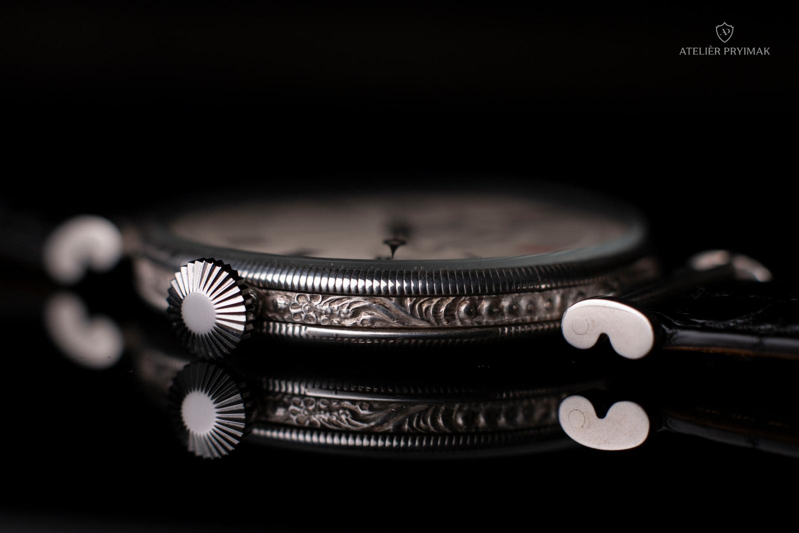 Especially for this watch, a case made of jeweler's brass was handmade in our studio, decorated with blue zircons and gold plating, which gives the watch a luxurious look and uniqueness. The diameter of the watch without the crown is 48mm.