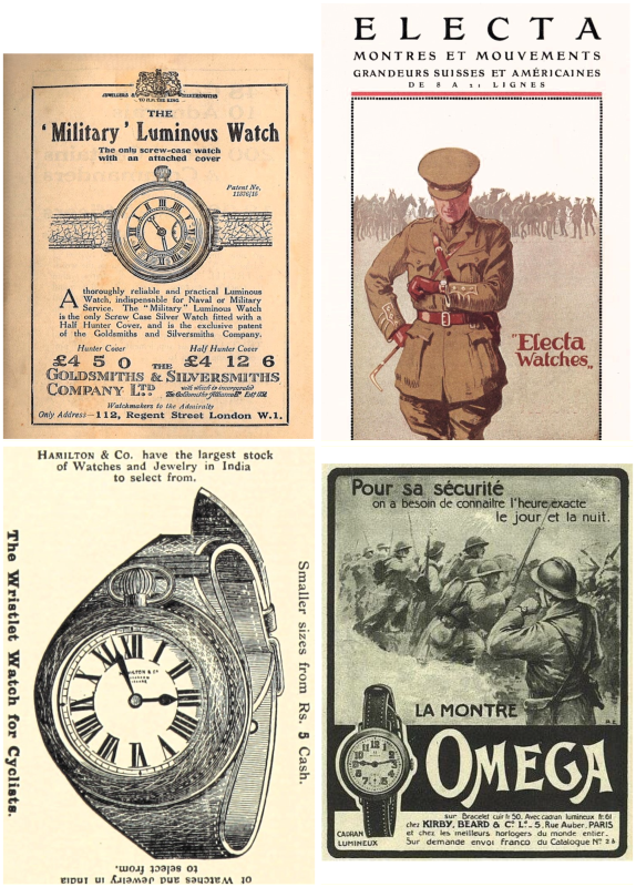 Armáda patřila mezi první, kdo začal náramkové hodinky masově používat. Během první světové války čelili velitelé obtížím při koordinaci rozsáhlých front, a kapesní hodinky se ukázaly jako nepraktické. Náramkové hodinky se staly nepostradatelnými – byly snadno čitelné a v zákopech měly zásadní význam.
