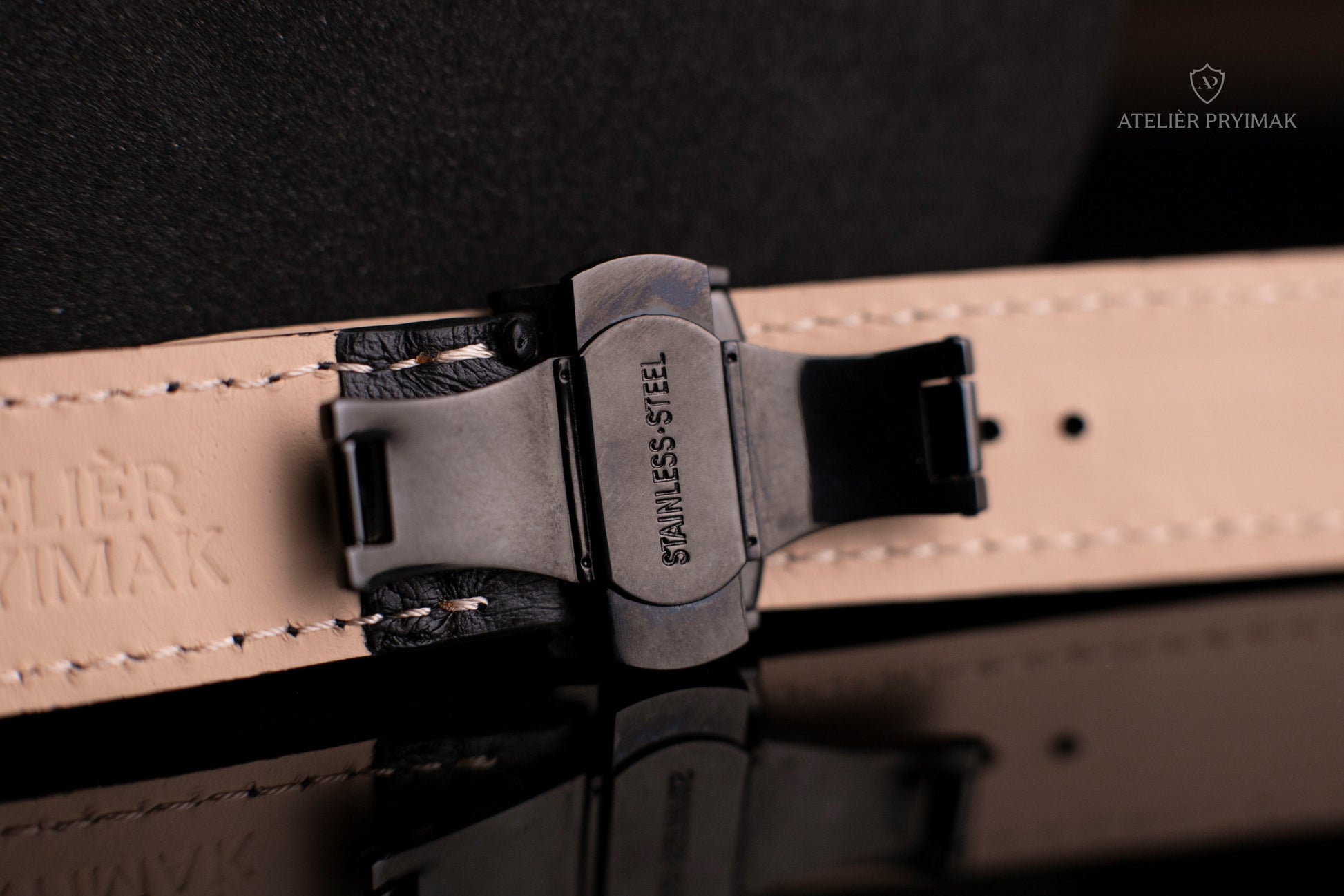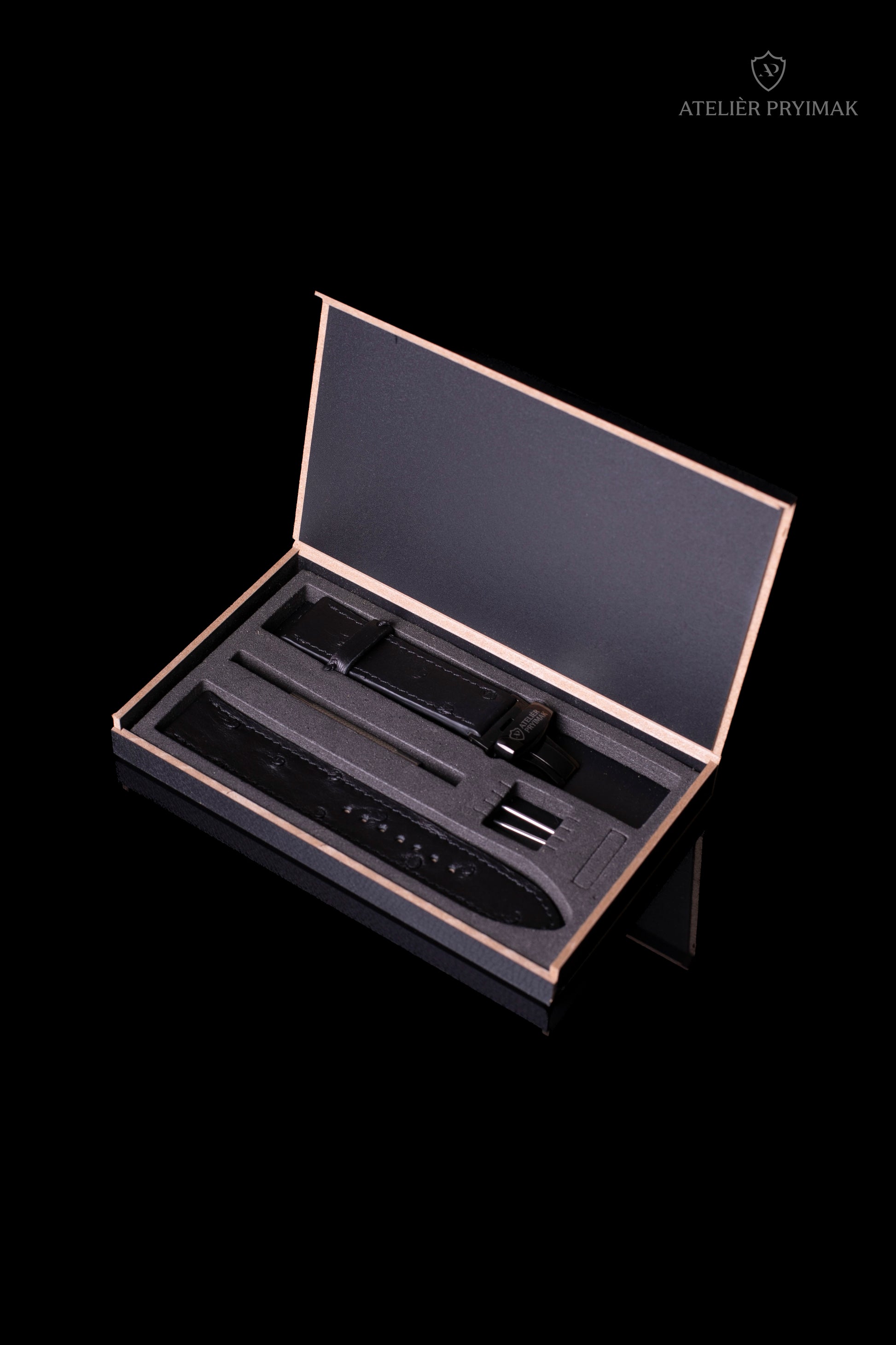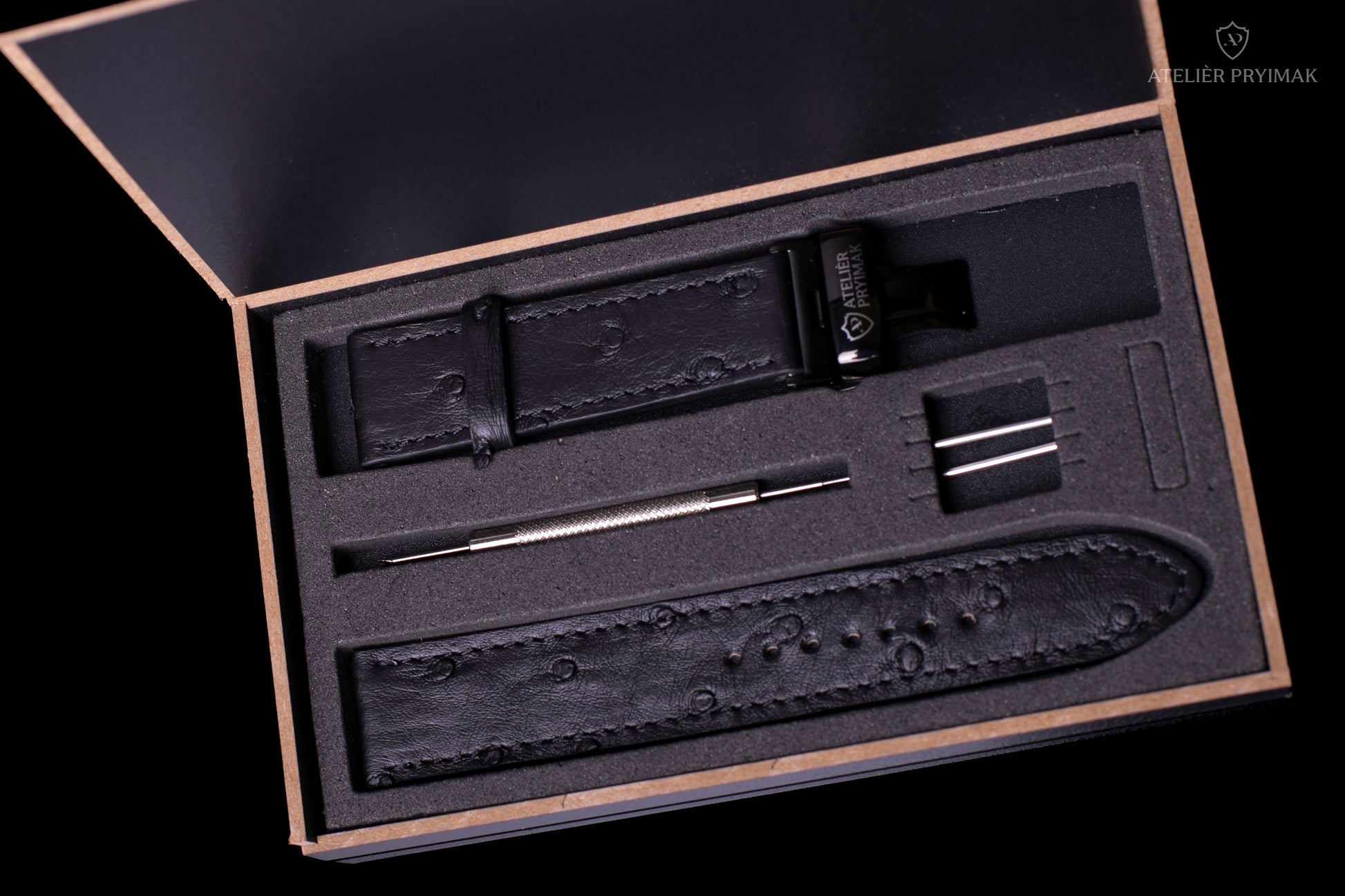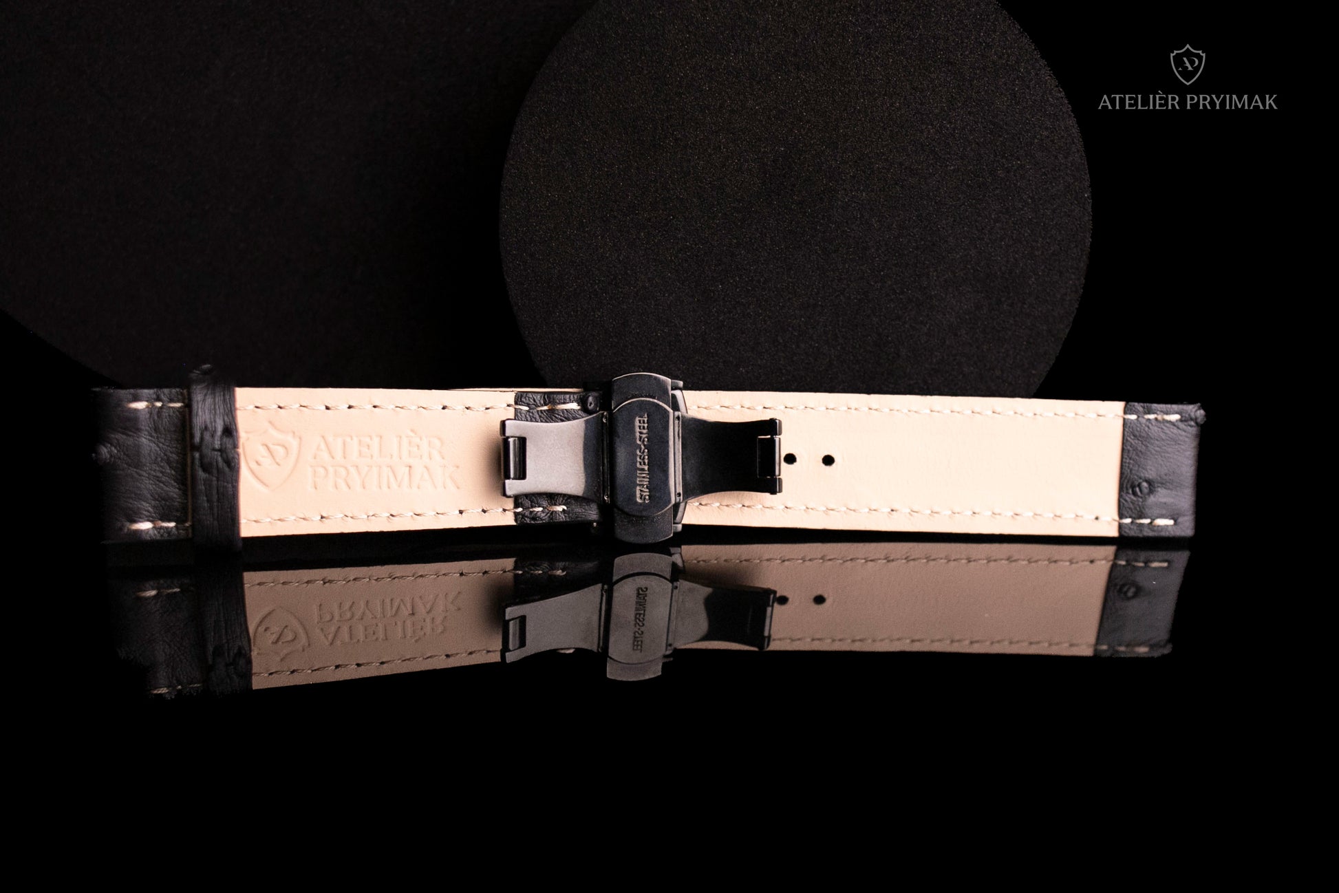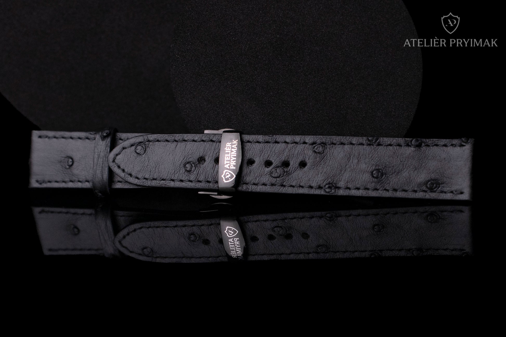 Kožený řemínek AP Prestige z pštrosí kůže - černý - Ručně šitý
