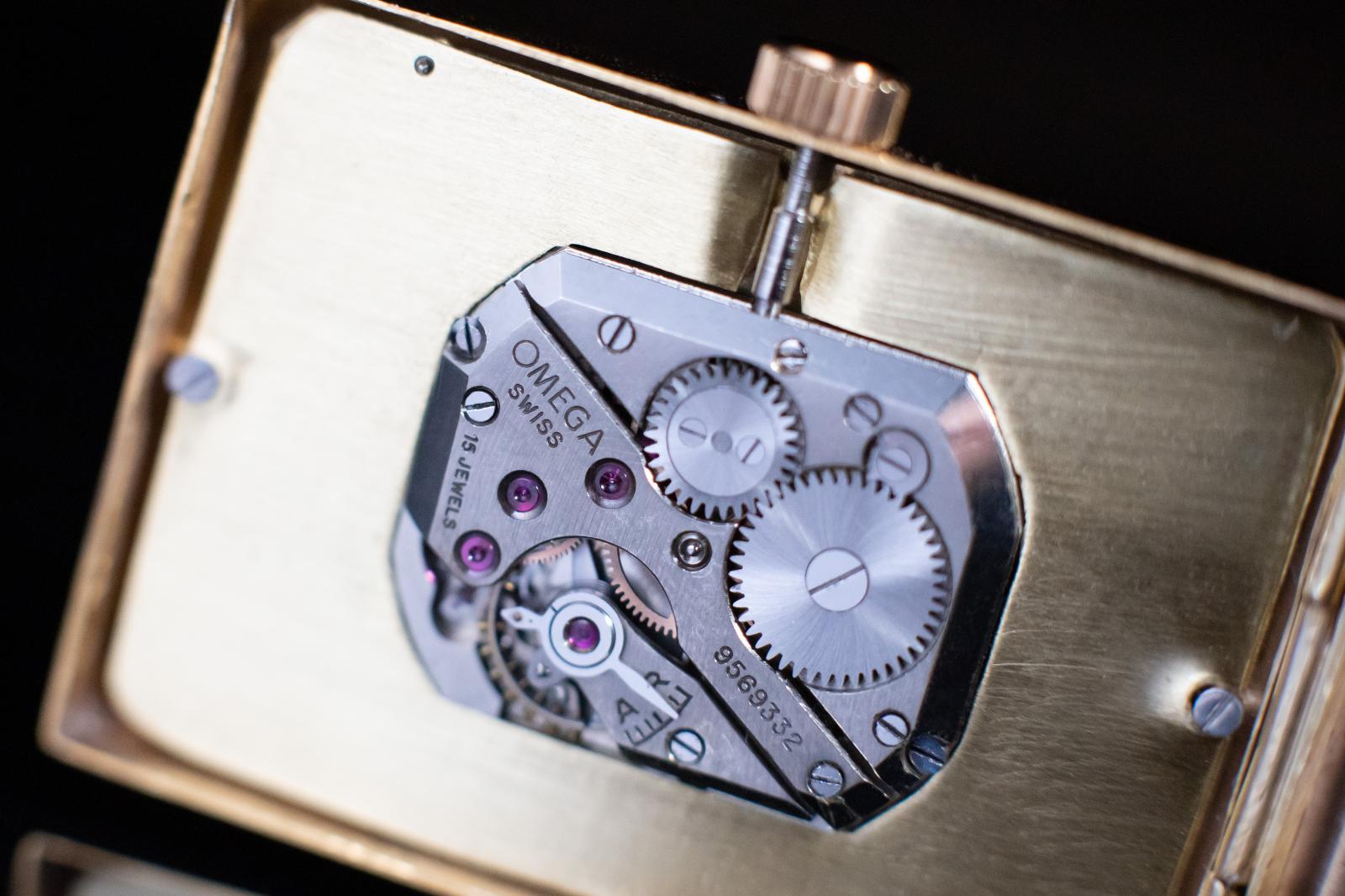 Srdcem hodinek je starožitný špičkový strojek Omega, se sériovým číslem 9569332 vyrobený v 1942 roce ve Švýcarsku.